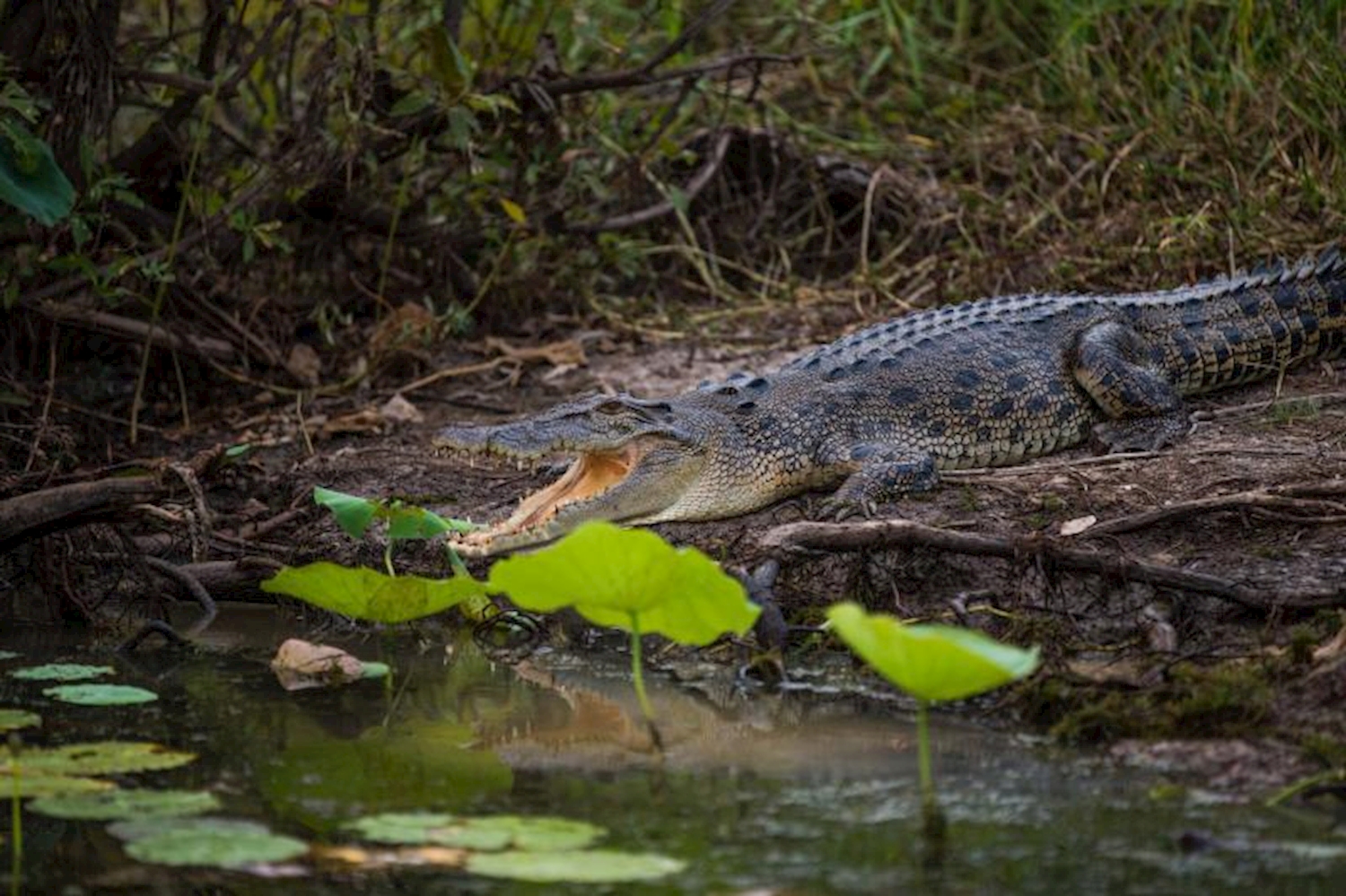 An early start as we leave Darwin at 6.30am. We head East along the Arnhem Highway and quickly see the expansive floodplains. After crossing the Adelaide River, we head to another water system the Mary River and Corroborree Billabong which has the highest concentration of saltwater crocodiles in the world. Your guide on the hour-long cruise we spot all the ‘salties’ in their natural habitat, but also point out and discuss the immense array of birdlife in the region. Join a wildlife tour on the Mary River wetlands, see crocodiles and prolific birdlife in their natural environment.